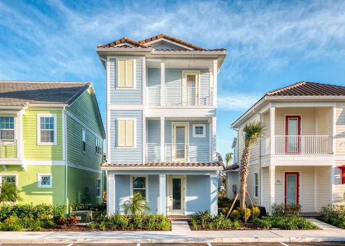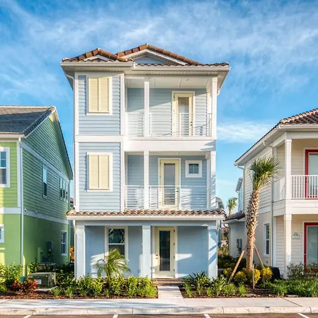 De 4-slaapkamer Ocean Waves Cottage Near Disney With Margaritaville Resort Access - 2983La ligt in de Celebration wijk en nodigt gasten uit om te ontspannen bij een zwembad. De villa biedt gasten Wi-Fi en parkeerplaatsen, en ligt 6 km verwijderd van ESPN Wide World of Sports Complex.